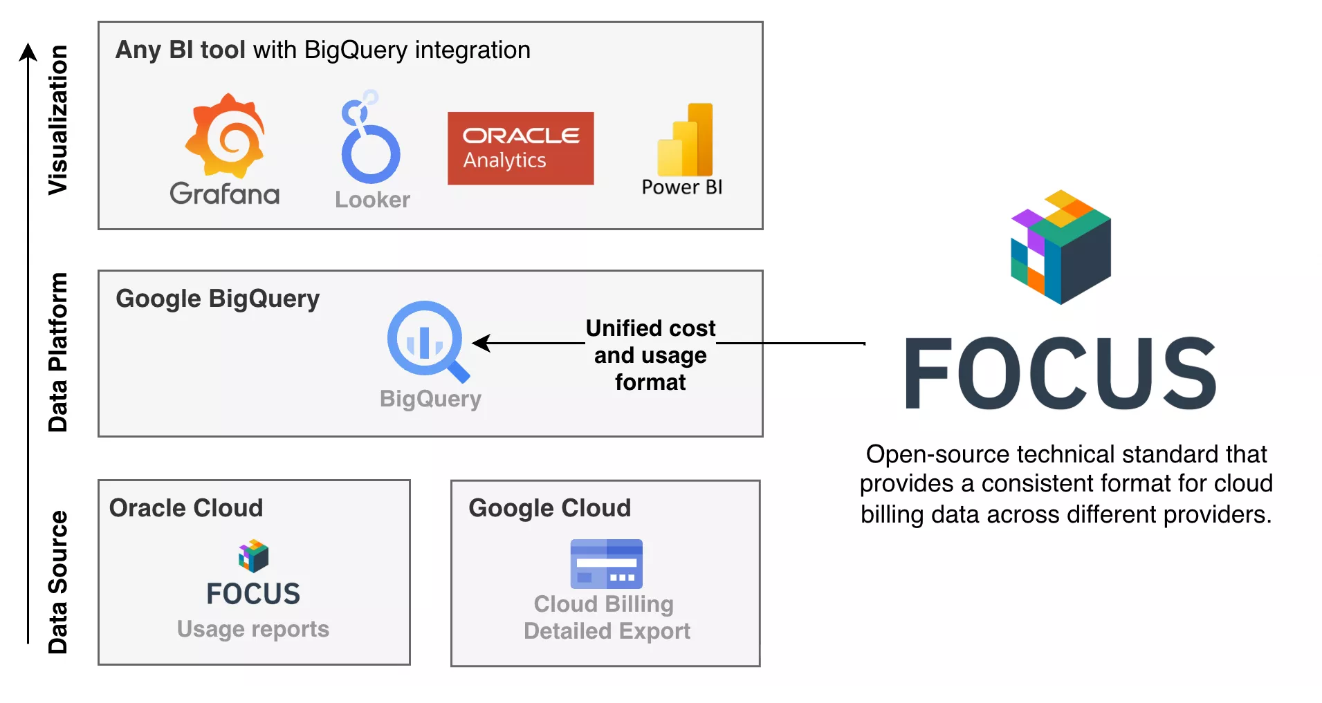 Multi-cloud cost visibility shouldn’t be painful. With FOCUS, both OCI and GCP now export billing data in a compatible format, and this tool bridges the gap by bringing OCI’s data into BigQuery where it can be queried alongside GCP costs.